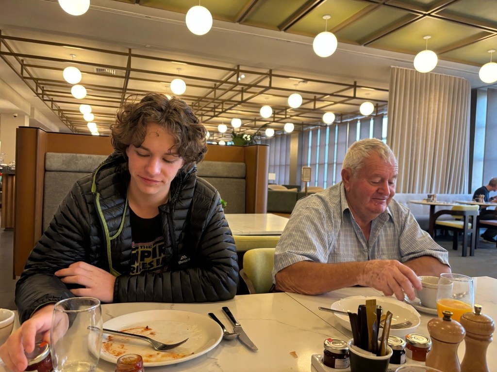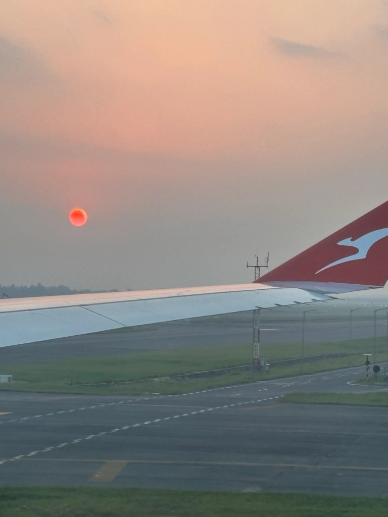 Had an early morning wake up call from Pat at 4am as he had decided we had slept enough! I think I heard him say “gotta get up and feed the chooks”. After a Yummo breakfast at the Parkroyal, we walked across to the international terminal.