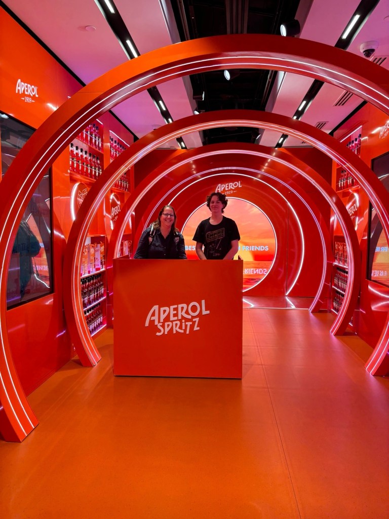Checked in for our flight and then walked through duty free. Ended up have an Aperol Spritz shot at 7am in the morning. It was free!