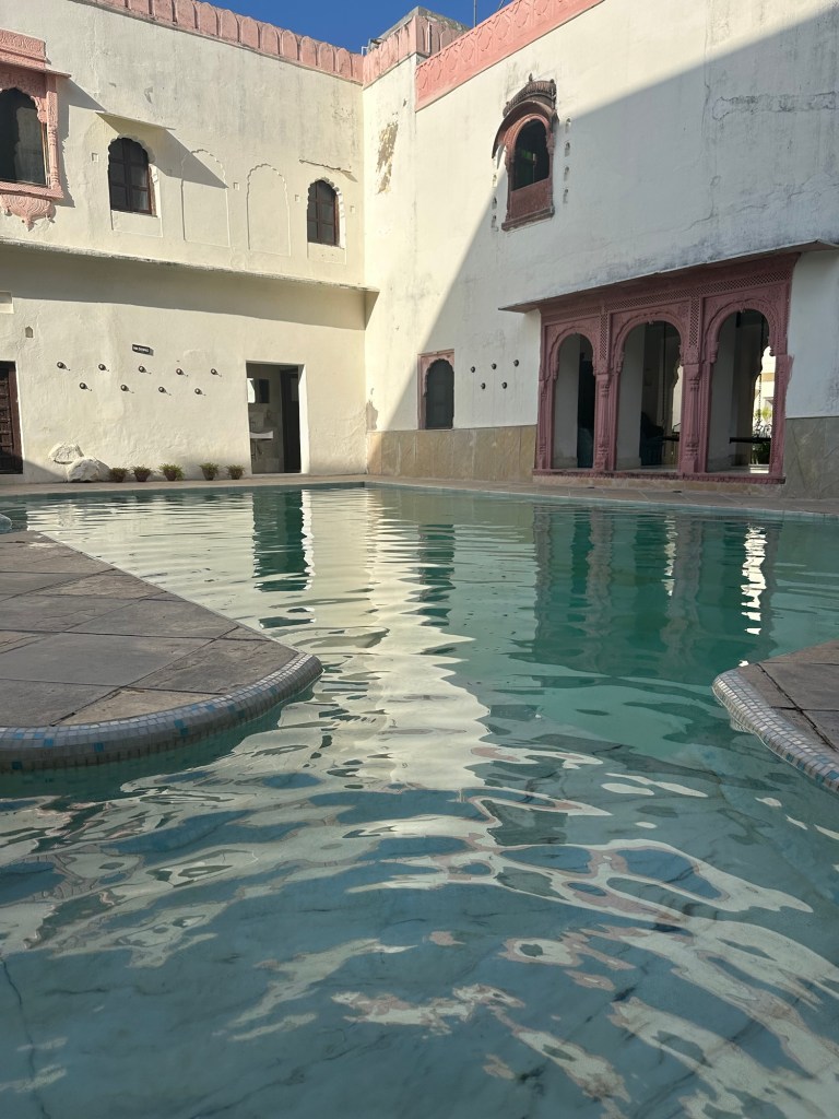 Back on the bus to Jojawar. Arrived to a beautiful renovated castle. Probably the nicest place we’ve stayed so far. When we walked in the gates, a man was playing the drums and another man was sprinkling flowers on top of us from the arch above.