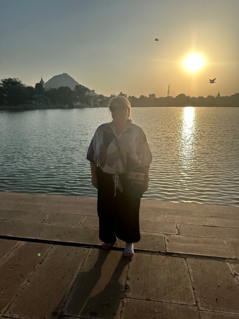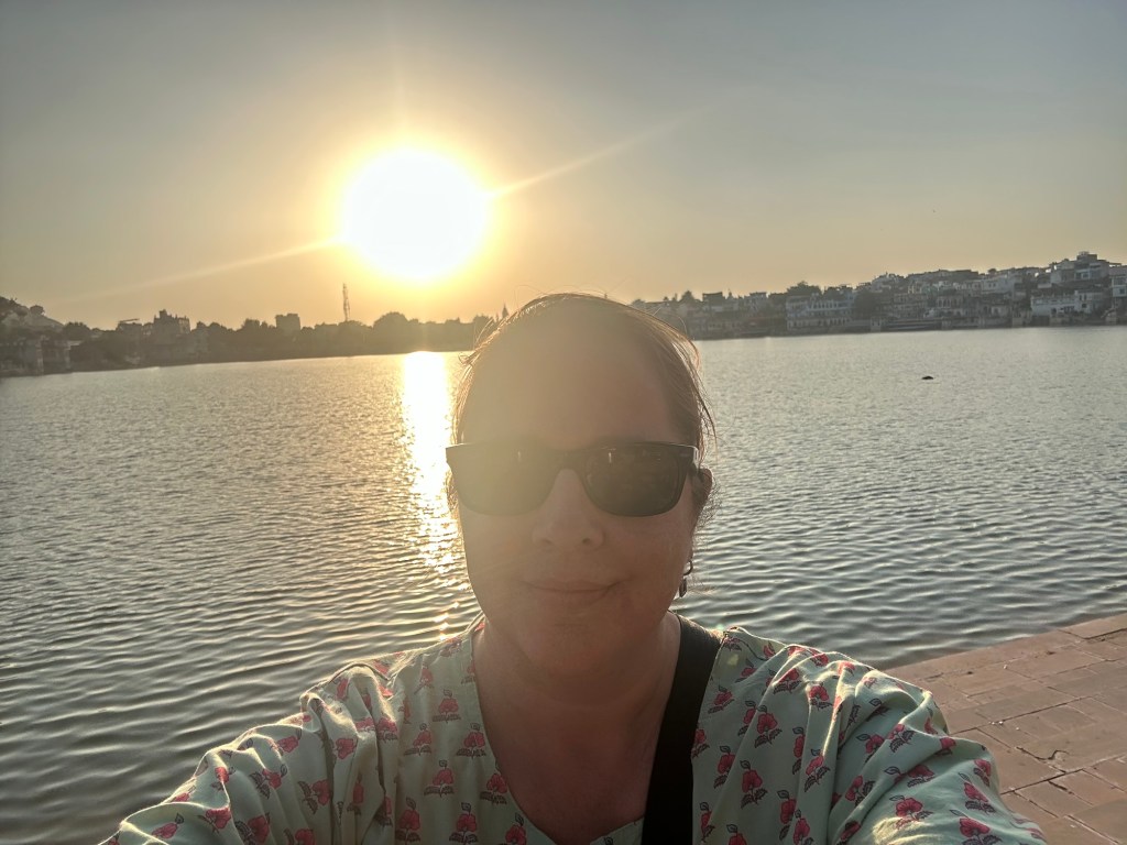 Then on the bus to Pushkar. Once we checked into the hotel, we caught tuk tuks down to the lake. It’s a holy temple site and you can’t wear shoes here, so our guide had made us all take our shoes off and carry them. Went down to the lake and sat on the steps and out our shoes down. Then a man came out yelling and screaming about us being disrespectful by putting our shoes down. Our guide tried to tell him we weren’t but he was crazy yelling. We ended up leaving. As we walked past him, he then tried to sell us ecstasy 🤣🤣🤣. A unique way to advertise his wares. Pushkar is a meat, alcohol and drug free city, so they have a problem with illegal drugs.