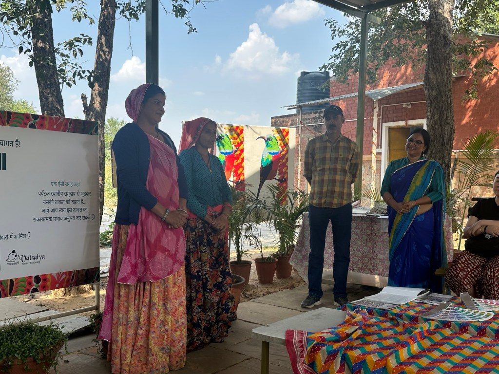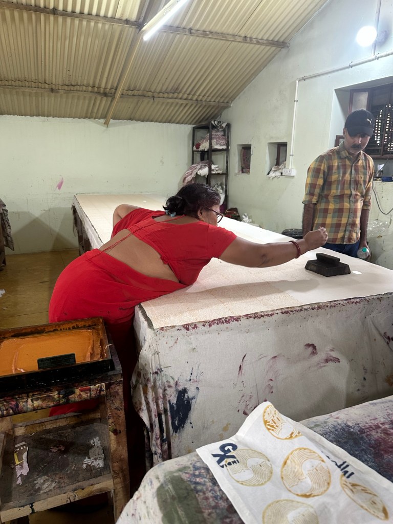 Had a buffet lunch (for 500 rupees-about $9) and then back on the bus to the block printing place. It’s called Vatsalya and is a place where when can work and learn the art of block printing. We all had a try at block printing, then some shopping. Everything was so cheap for being handmade. A nice bag was about $10 Australian.