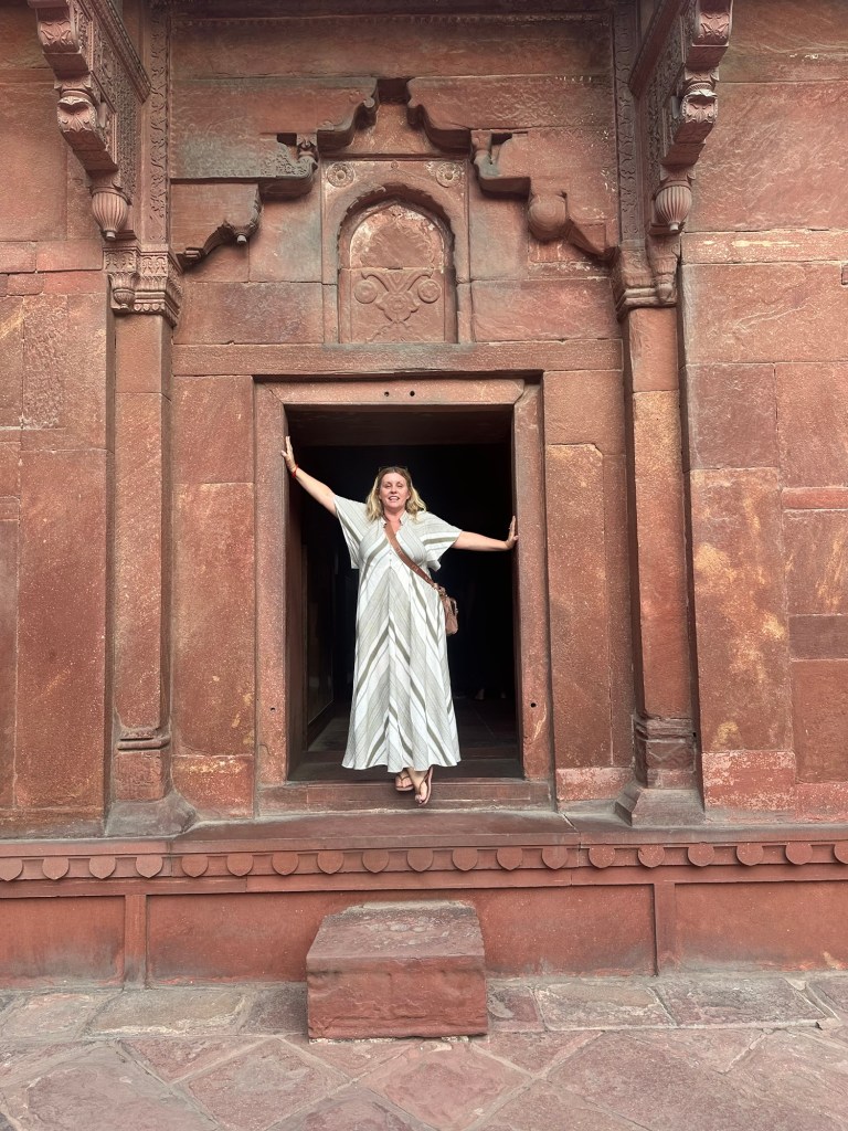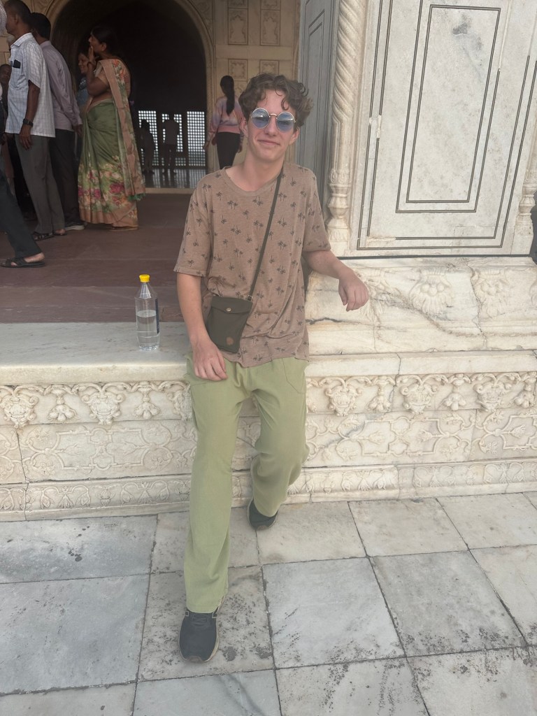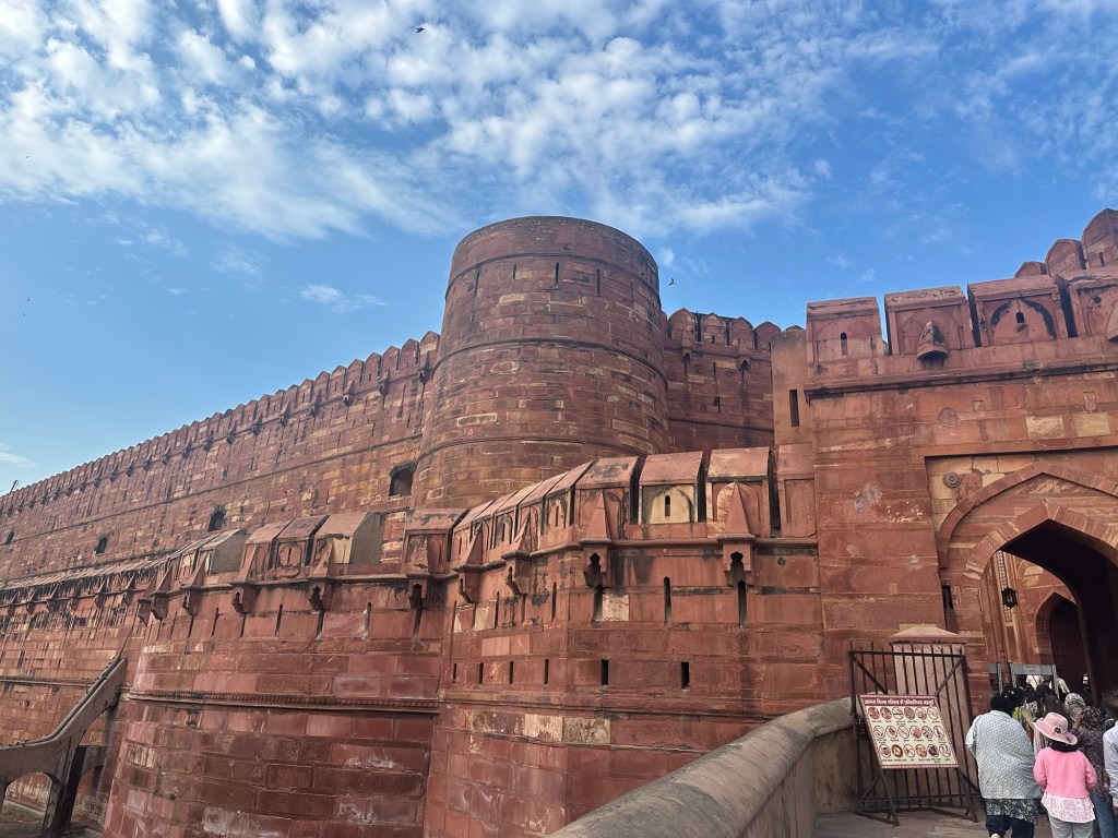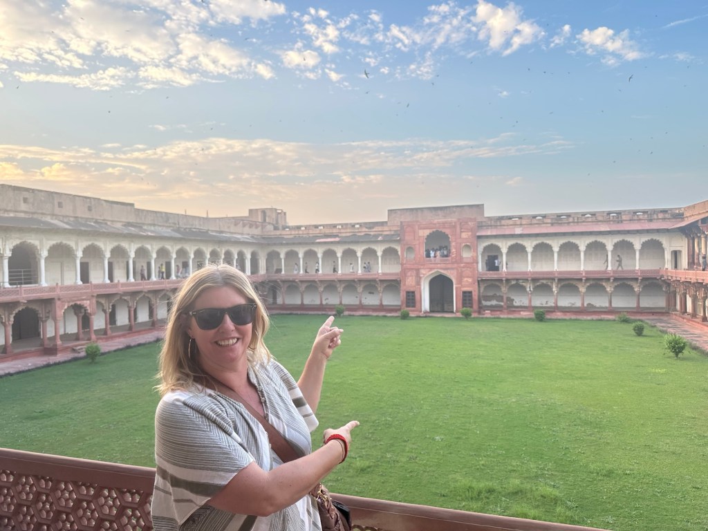 Then onto Agra where we went straight to the Agra Fort. This was the best fort I’d seen in India. It had a moat where they had crocodiles in it (on past times of course!), double walls with tigers in them, guards towers and then if invaders got past all that, they had a long sloped driveway where the rolled giant stones down and poured hot oil from above. Savage people!