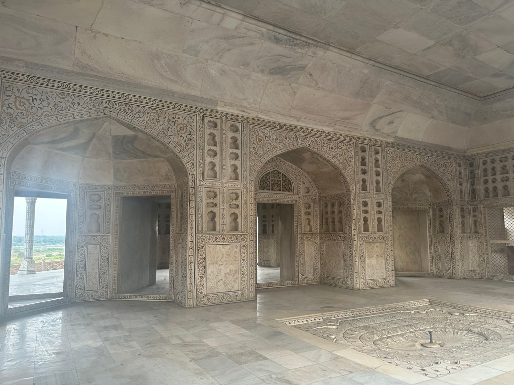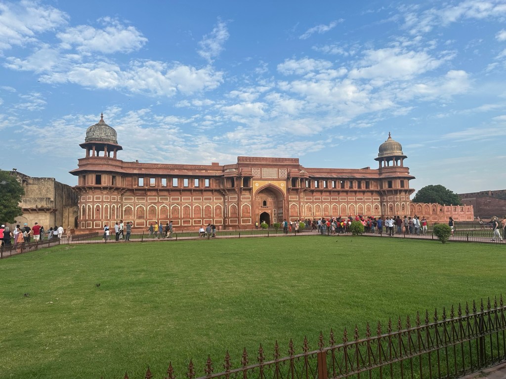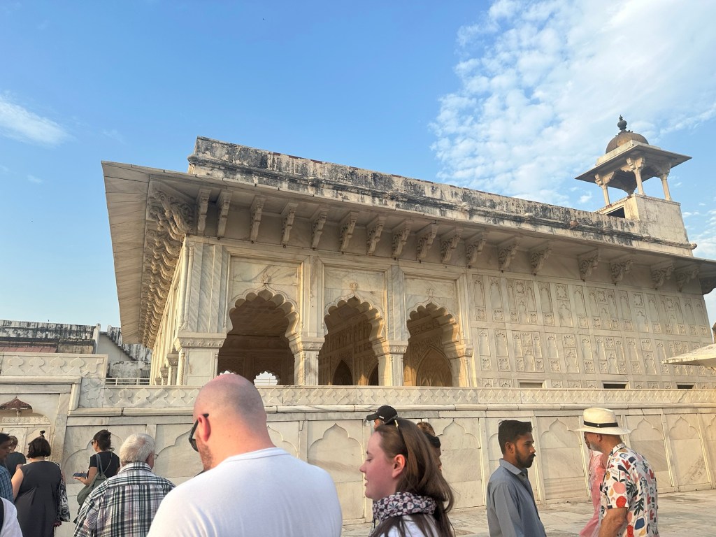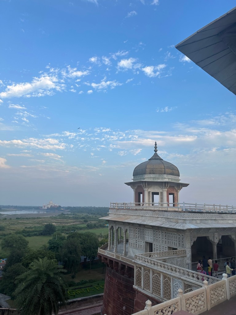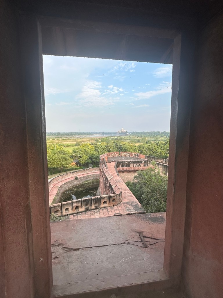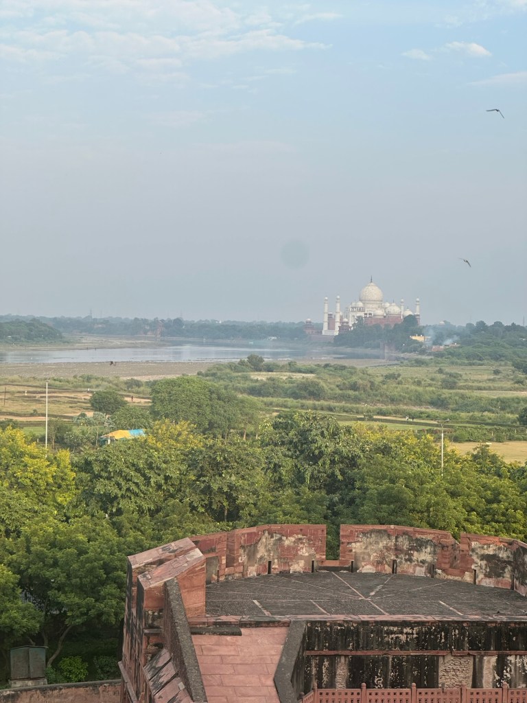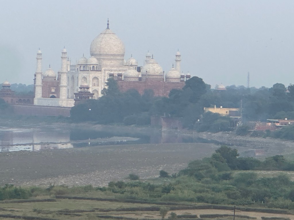 Got a fantastic view of the Taj Mahal from the fort. We’re going there tomorrow morning. It is very impressive, even from afar.